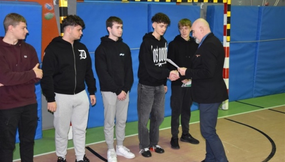 Uroczyste wręczenie nagród w Międzyklasowym Turnieju Piłki Nożnej o mistrzostwo ZS 4 w Jaśle